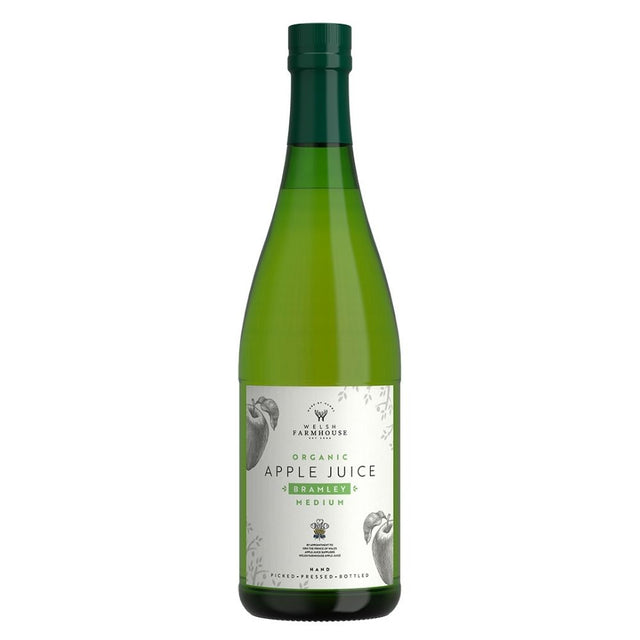 Welsh Farmhouse 750ml Bramley Apple Juice is a premium pressed apple juice made from classic Bramley apples, delivering a distinctive sharp flavour that mellows beautifully into a smooth, refreshing medium juice.