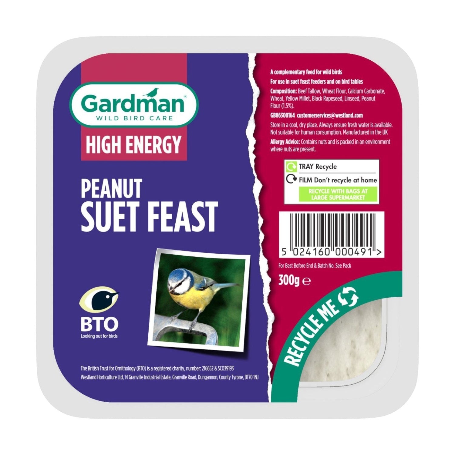 Feed your garden birds with the Gardman Wild Bird Peanut Suet Feast, a high-energy suet mix enriched with peanuts to support healthy, active wildlife. Perfect for specialist suet feeders or bird tables, it attracts a wide range of common garden birds.