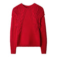 Full of character, this red cable knit jumper combines classic craftsmanship with playful design details. The chunky knit provides warmth and comfort, while the pointelle stitching adds subtle elegance. Finished with fabulous fringing, it creates movement and a unique textured look that makes it stand out from the ordinary. Perfect for layering with jeans, skirts, or dresses, this versatile jumper transitions effortlessly from daytime casual to evening chic. Its regular fit ensures all-day comfort, making it a must-have for any stylish winter wardrobe.