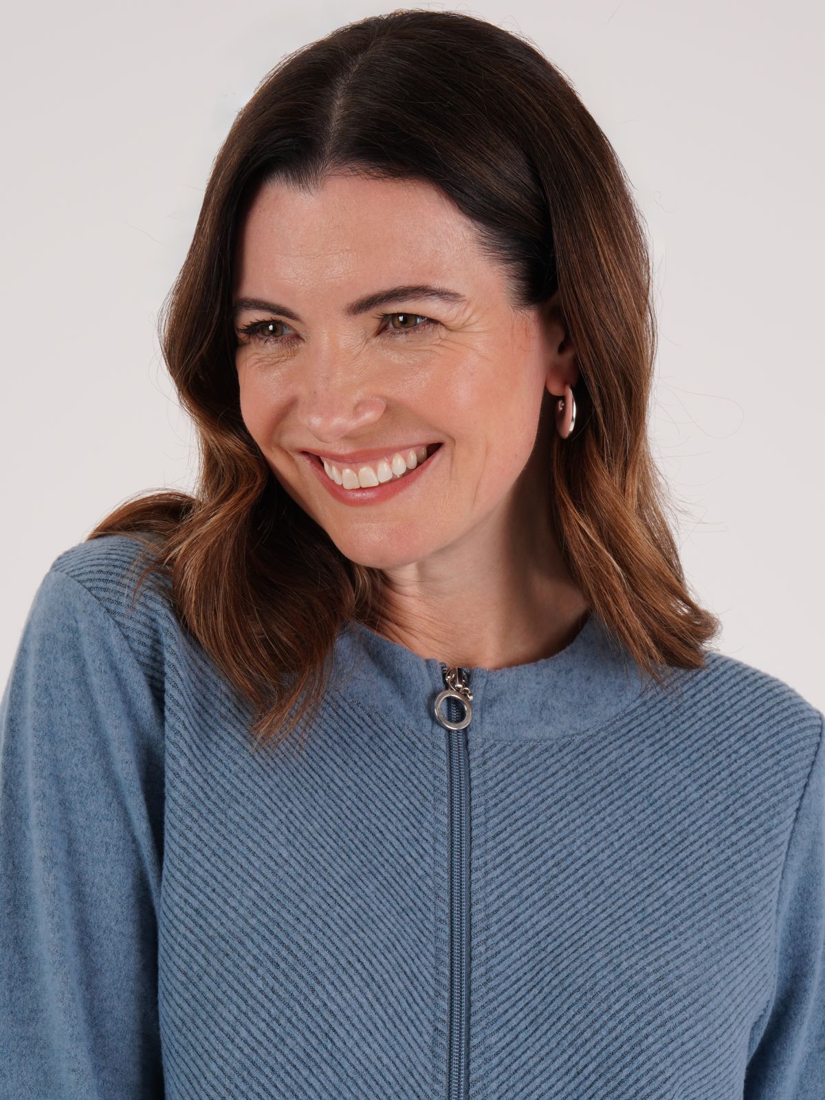 TIGI 14/16 Blue Stella Chevron Rib Zip Cardigan - T25-15C