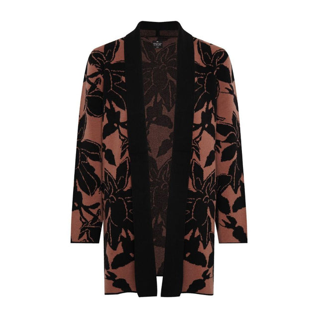 The Tigi Longline Floral Cardigan in Brown is a stylish and versatile layering piece designed for effortless elegance. Featuring a bold floral jacquard pattern in a warm camel hue, this longline cardigan offers a relaxed fit that pairs beautifully with both casual and dressy outfits.