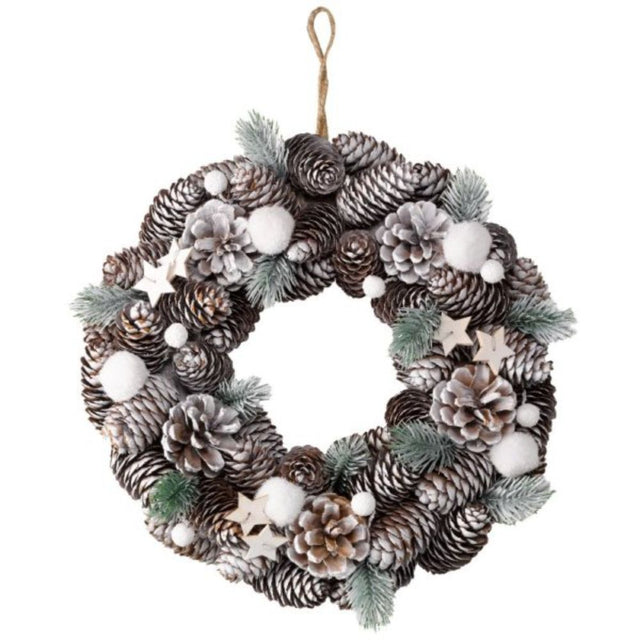 Bring rustic festive charm to your home with the Three Kings 30cm FrostPine Wreath. Designed with a snowy rustic effect and a classic pine finish, this wreath is perfect for adding a wintery touch to doors, walls, or fireplaces. Complete with a hanging loop, it is ideal for both indoor and outdoor displays.