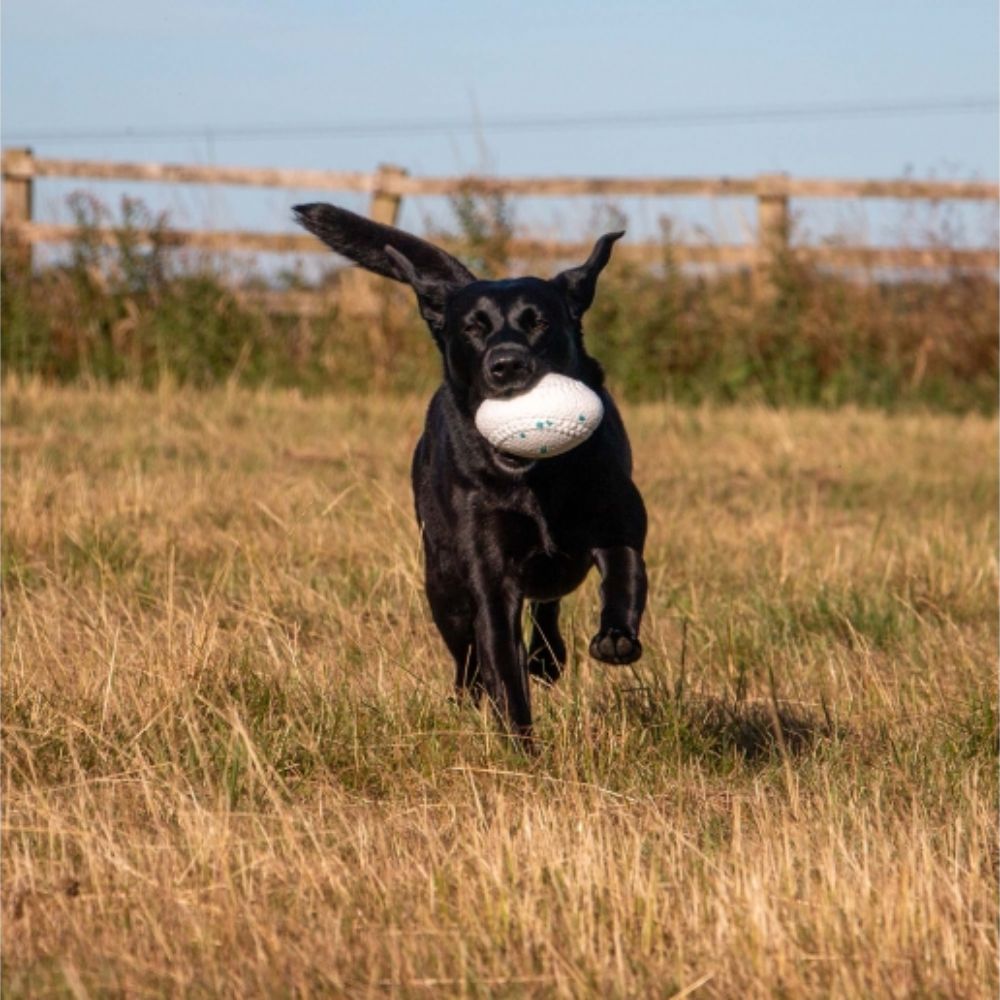The Ancol Floating Rugby Ball Dog Toy is built for active play, whether on land or in water. Its bright colouring ensures visibility during games of fetch, while the lightweight, buoyant material keeps it floating on the surface for easy retrieval.