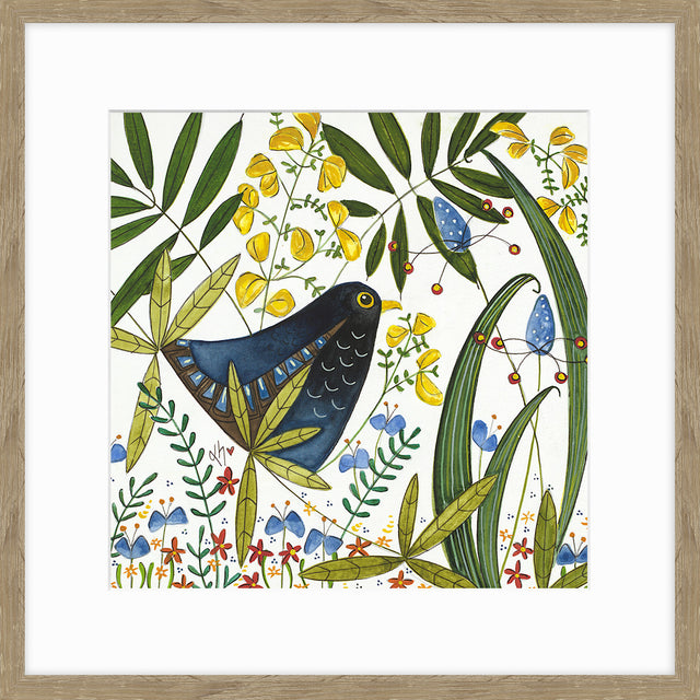 Artko 42cm 'Blackbird in Hedgerow' Framed Print by Linda Hoskin - AK12651