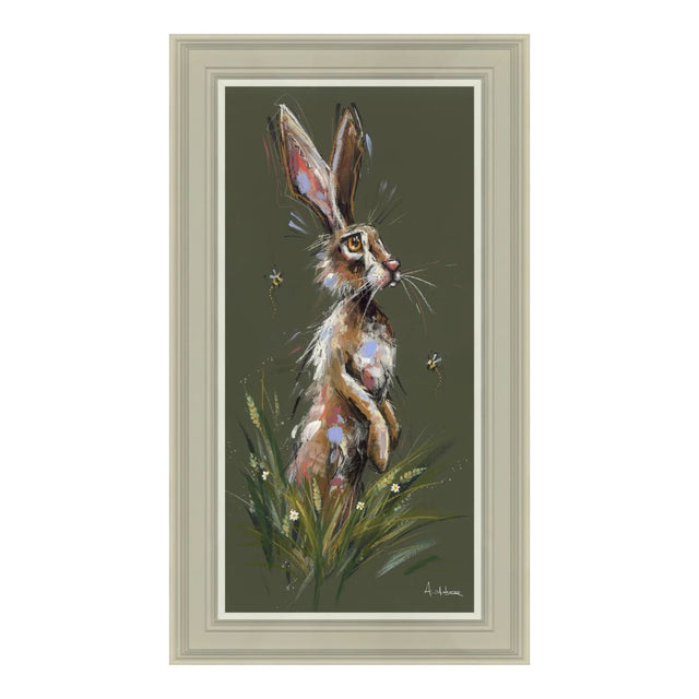 Artko 70cm Hand-Finished 'Hoppity Rabbit' Framed Print by Ashley Saunders – Playful Country Animal Wall Art
