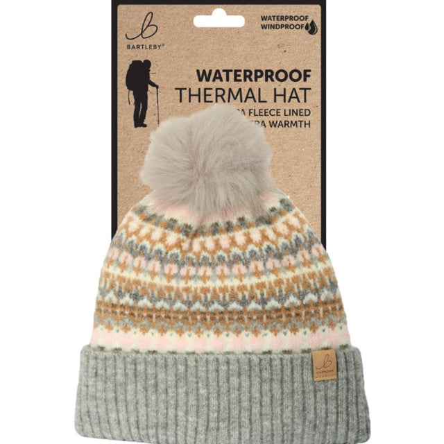 Stay warm and dry this winter with the Bartleby Ladies Waterproof Bobble Hat — the perfect companion for cold, wet, and windy weather. Crafted with a protective waterproof and windproof membrane, this hat offers reliable protection against the elements while maintaining breathability. The Nordic-inspired knit pattern adds a touch of seasonal charm, while the luxurious Sherpa fleece lining delivers superior warmth and comfort. Whether you’re out walking, commuting, or enjoying a winter adventure, this hat ensures your head and ears stay cosy and dry without compromising on style.