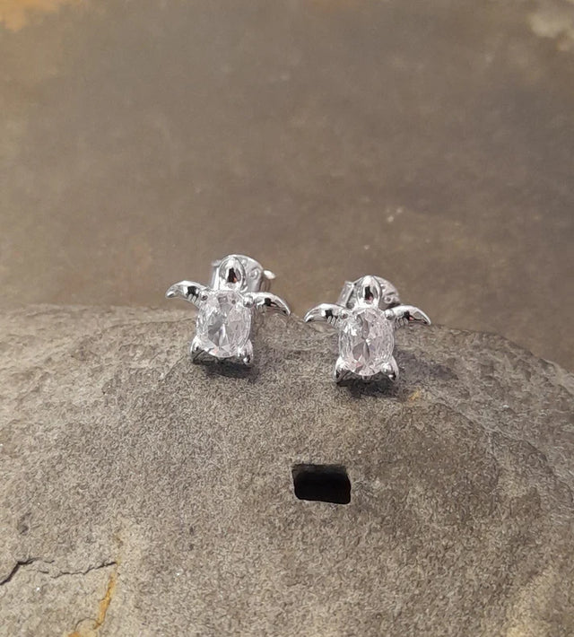 Blue Lily 8mm Clear Crystal Turtle Stud Earrings - SS653B