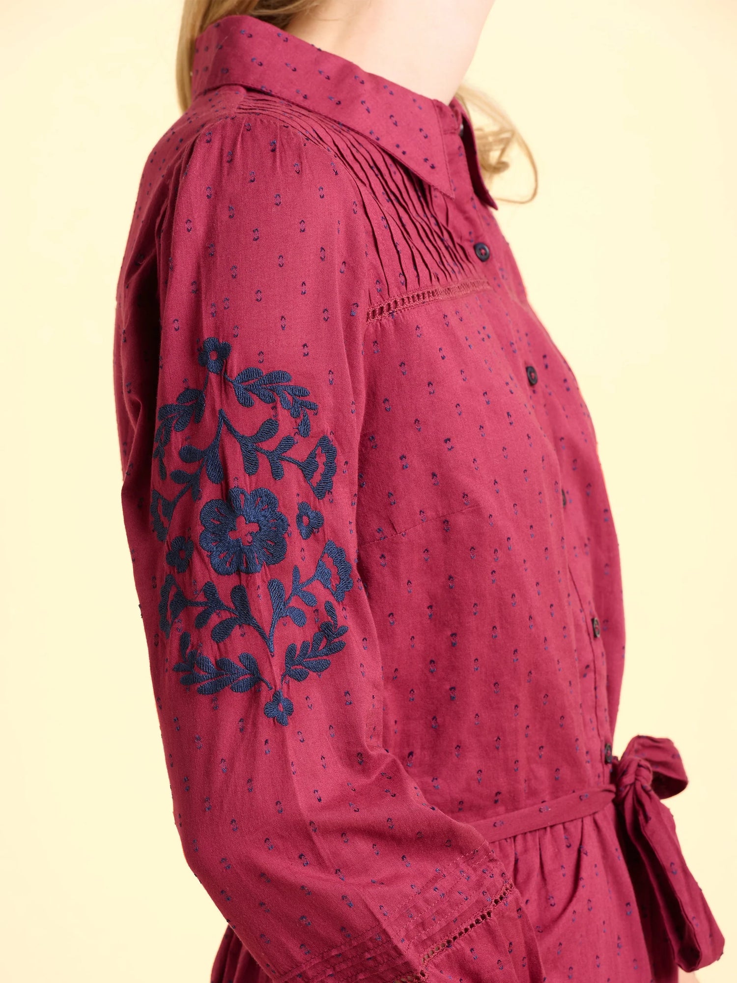The Brakeburn Embers Maxi Dress – Burgundy blends feminine charm with effortless sophistication. Crafted from lightweight 100% cotton dobby fabric, this dress is perfect for both casual outings and special occasions, offering breathability, comfort, and timeless style.
