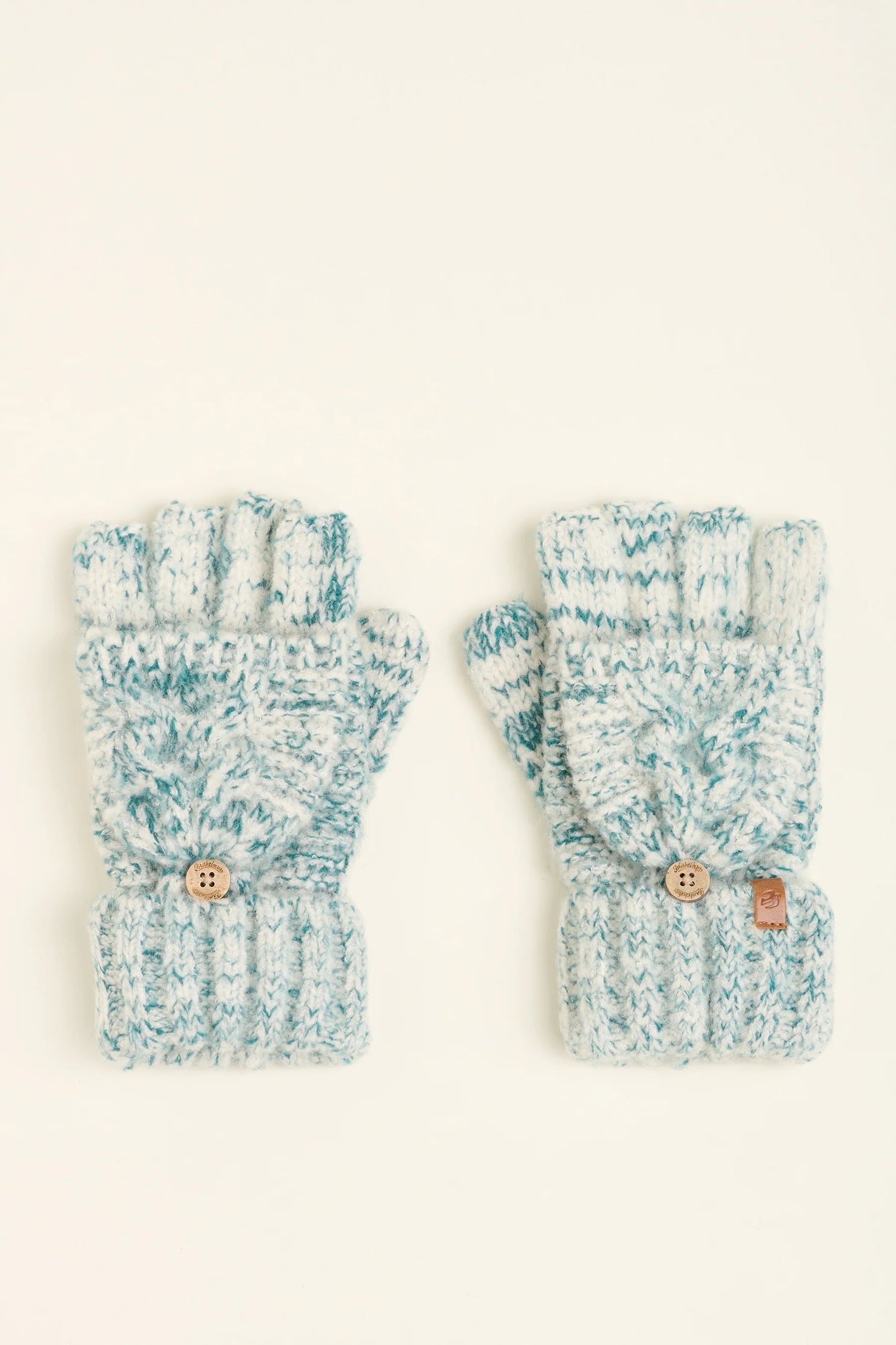 Flip mittens offer the best of both worlds: the practicality of a fingerless glove with the option of a full mitten when you need it most. The Brakeburn Teal Twisted Yarn Cable Flip Mittens are soft, chunky and comfy to wear. We like the little wooden buttons too.