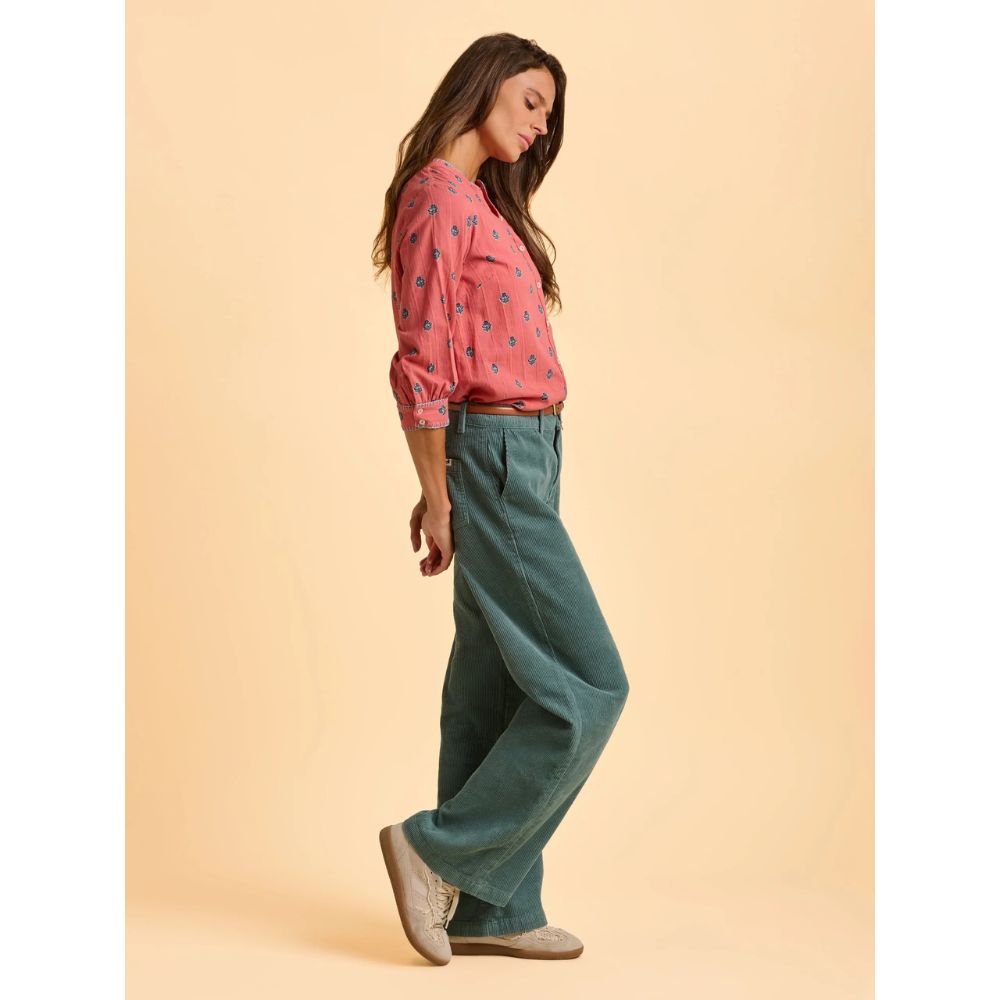 Bring charm and comfort to your wardrobe with the Brakeburn Sara Blouse. Crafted from 100% breathable cotton, this blouse is soft, lightweight, and perfect for everyday wear. The textured floral print adds a fresh, seasonal touch, while the gathered ¾ sleeves with contrast blue stitching create a unique twist on a classic design. Pearlescent buttons and subtle tailoring details ensure a flattering, feminine shape, making this piece ideal for dressing up or down. Pair it with your favourite light denim jeans for a casual weekend look, or tuck it into tailored trousers for a smart-casual outfit with effortless style.