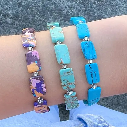 Carrie Elspeth Aubergine Mosaic Rectangles Beaded Bracelet is backordered and will ship as soon as it is back in stock.