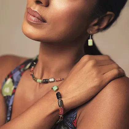Experience the vibrant beauty of the Carrie Elspeth Rainbow Picasso Czech Glass Beaded Necklace. Handcrafted with exquisite attention to detail, this necklace features stunning Czech glass beads in a rainbow of colours. Elevate any outfit with this statement necklace that is both beautiful and unique.