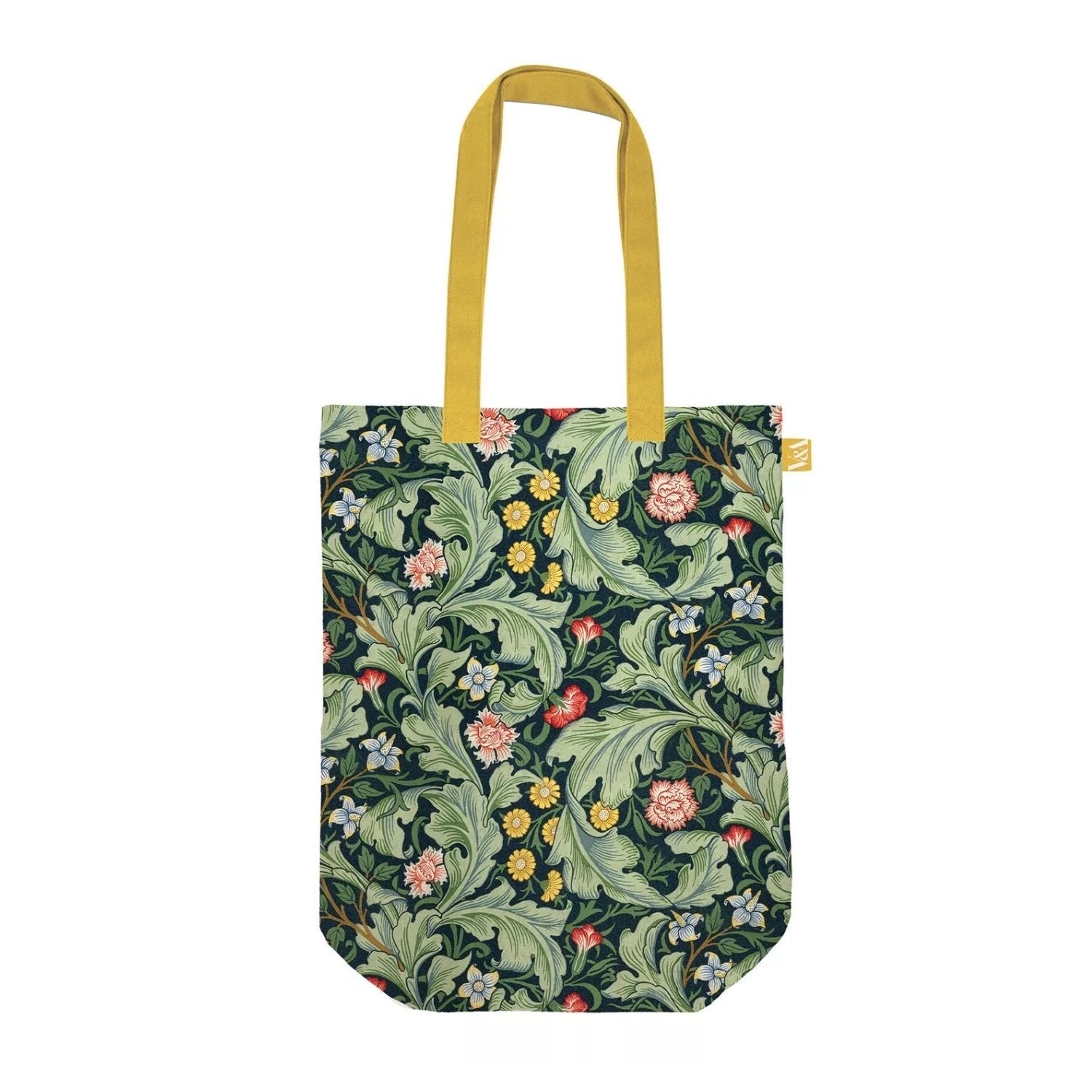 - Leicester Wallpaper Pattern: Featuring a captivating design inspired by William Morris's Leicester wallpaper, this cloth bag showcases intricate patterns and rich colours, adding a touch of vintage elegance to your ensemble.