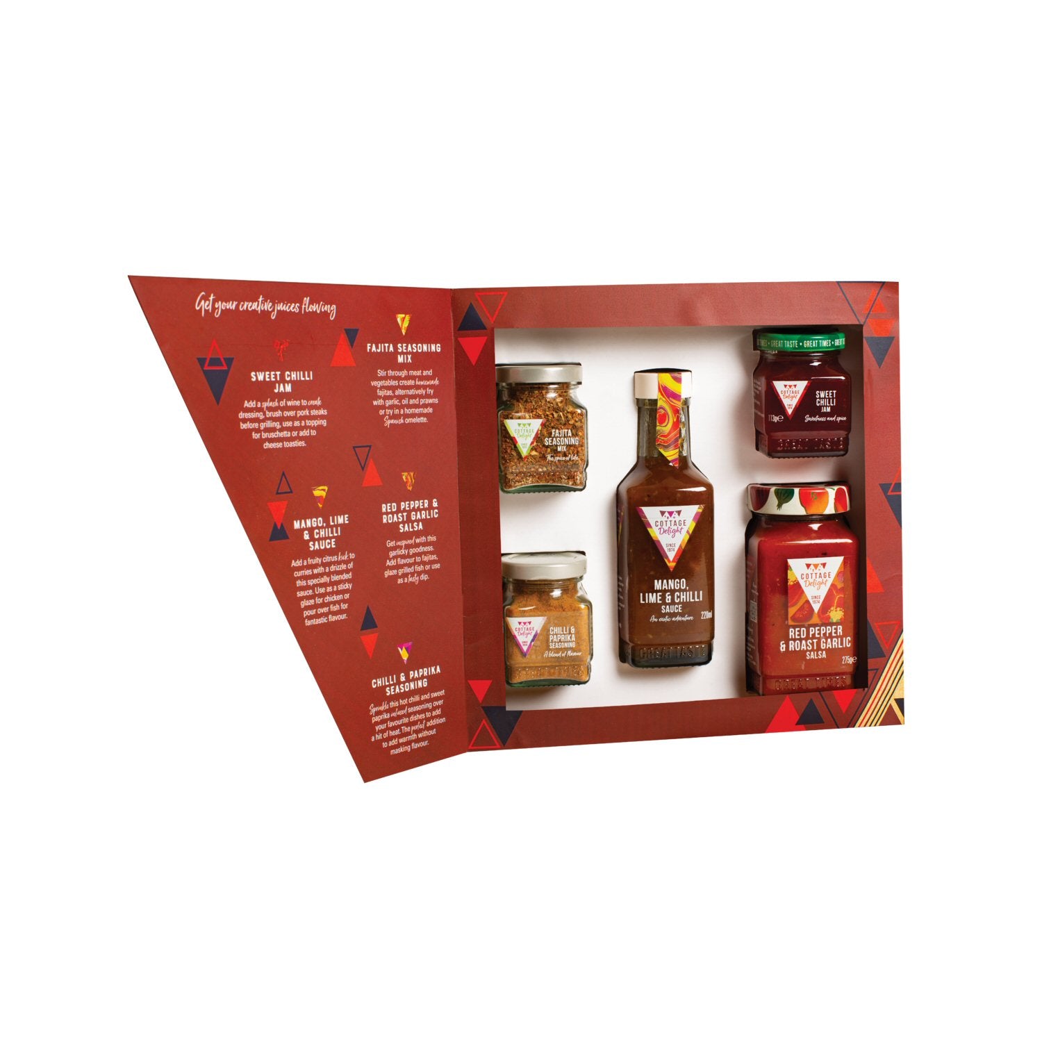 Discover a world of vibrant tastes with the Cottage Delight The Foodie’s Favourites. This exciting selection features an array of seasonings, sauces, and jams that will elevate your meals and snacks. Perfect for adventurous eaters, home cooks, and those who love to experiment with flavours.