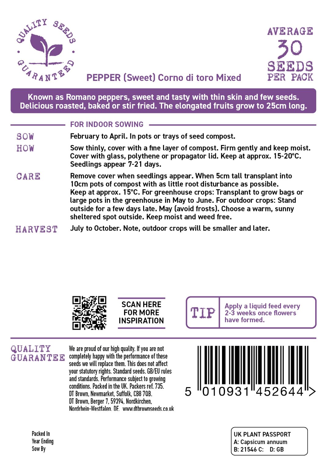 Enjoy the sweet, delicious flavour of D.T. Brown Pepper (Sweet) Corno di Toro in your cooking, adding a burst of freshness and colour to your meals while experiencing the joy of growing your own peppers.