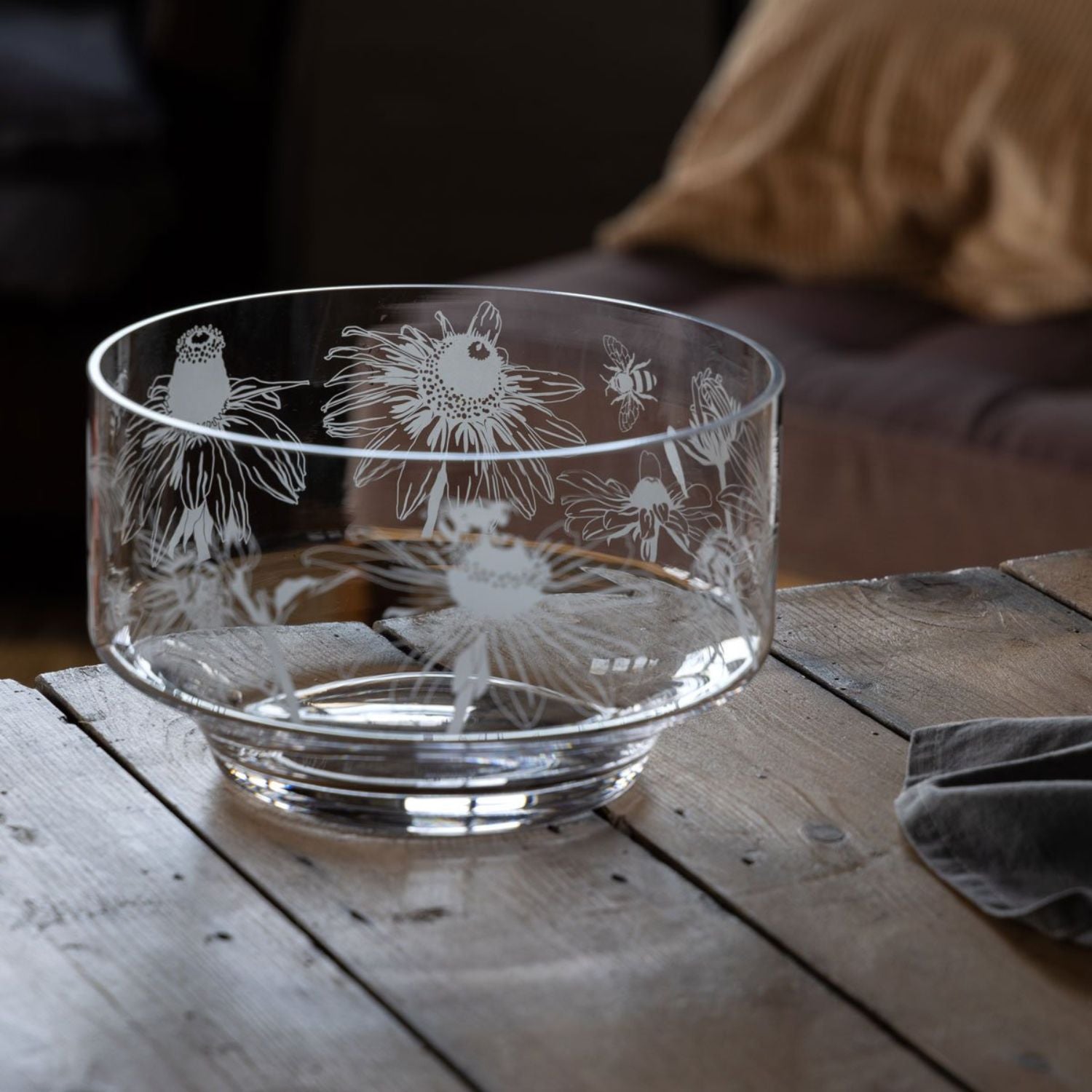 Let the beauty of the Bloom Rudbeckia and Bees Bowl transform your space into a stunning garden oasis. Handcrafted with care and finished with an exquisite etch-decorated bloom, this bowl brings the charm of the outdoors inside. The Rudbeckia and Bees decoration is subtle yet impactful, making a statement while seamlessly blending with any décor.