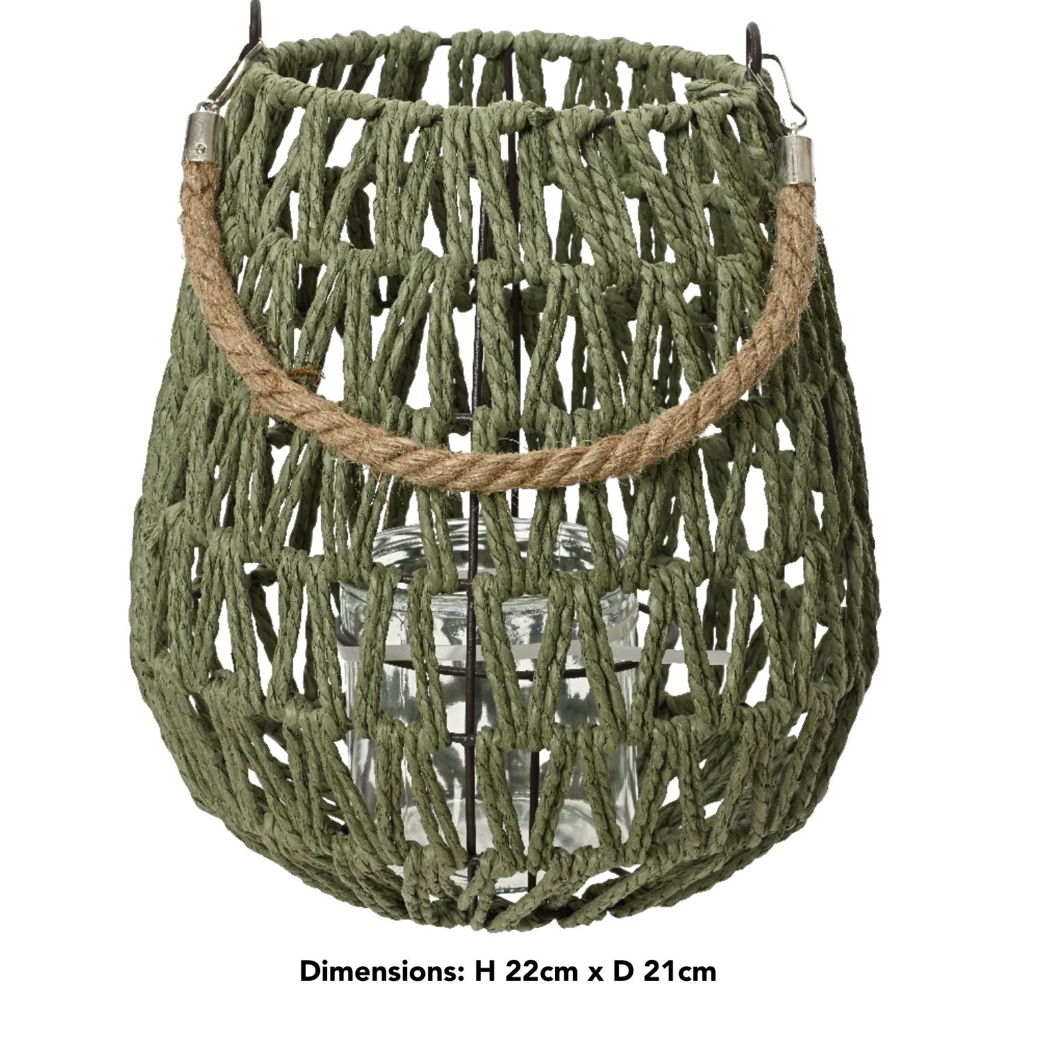 Add a natural, rustic touch to your home with the Decoris 22cm Green Jute Round Lantern. Crafted with eco-friendly jute and featuring a beautiful green hue, this lantern is the perfect way to enhance your space with a warm and inviting atmosphere.