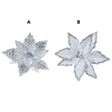 Decoris 27cm White Poinsettia with Sequin Petal Clip (Choice of 2)