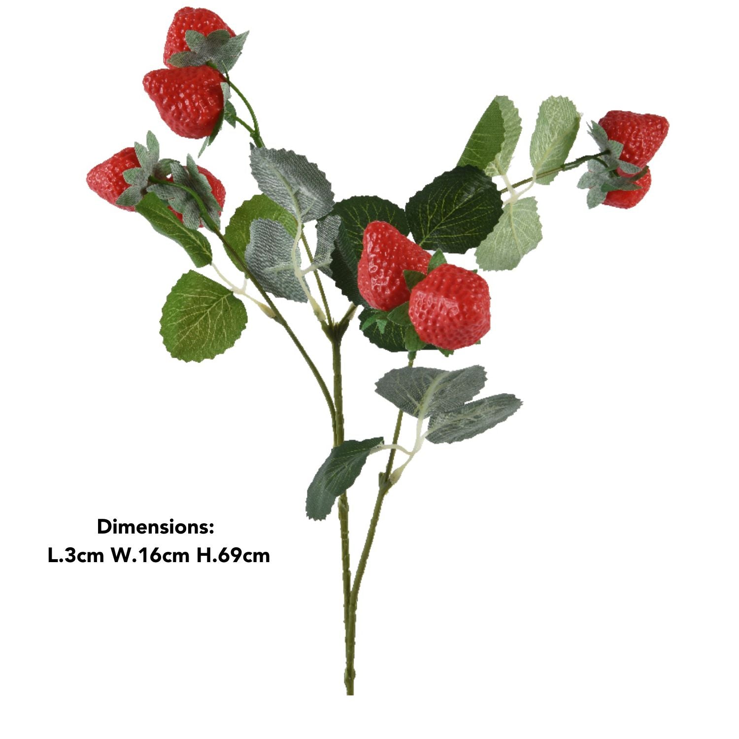 Decoris 69cm Artificial Strawberry Spray on Stem