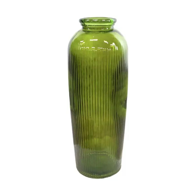 Enhance your interior with the Decoris Green Recycled Glass Vase, a perfect blend of beauty and eco-conscious design that will add sophistication to any space.