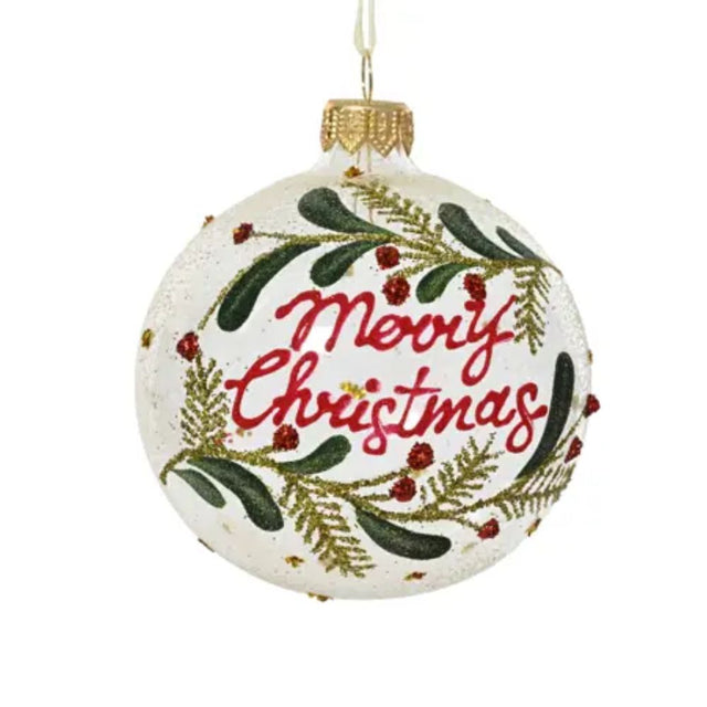 Decoris 8cm Clear Glass 'Merry Christmas' Bauble