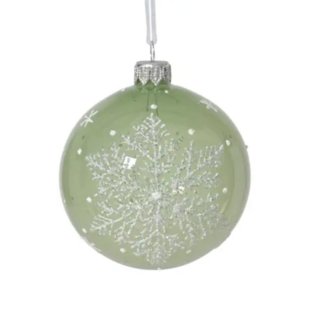 Decoris Green Transparent Enamel Glass Bauble with Snowflake