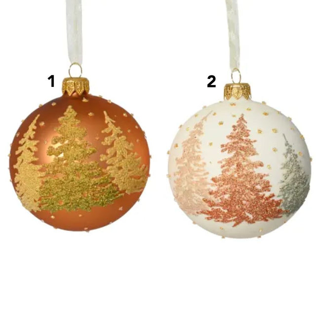 Decoris Matte Glass Bauble with Trees (Choice of 2)