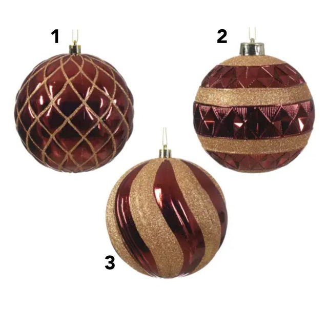 Decoris Oxblood & Gold Polystyrene Bauble – Choice of 3