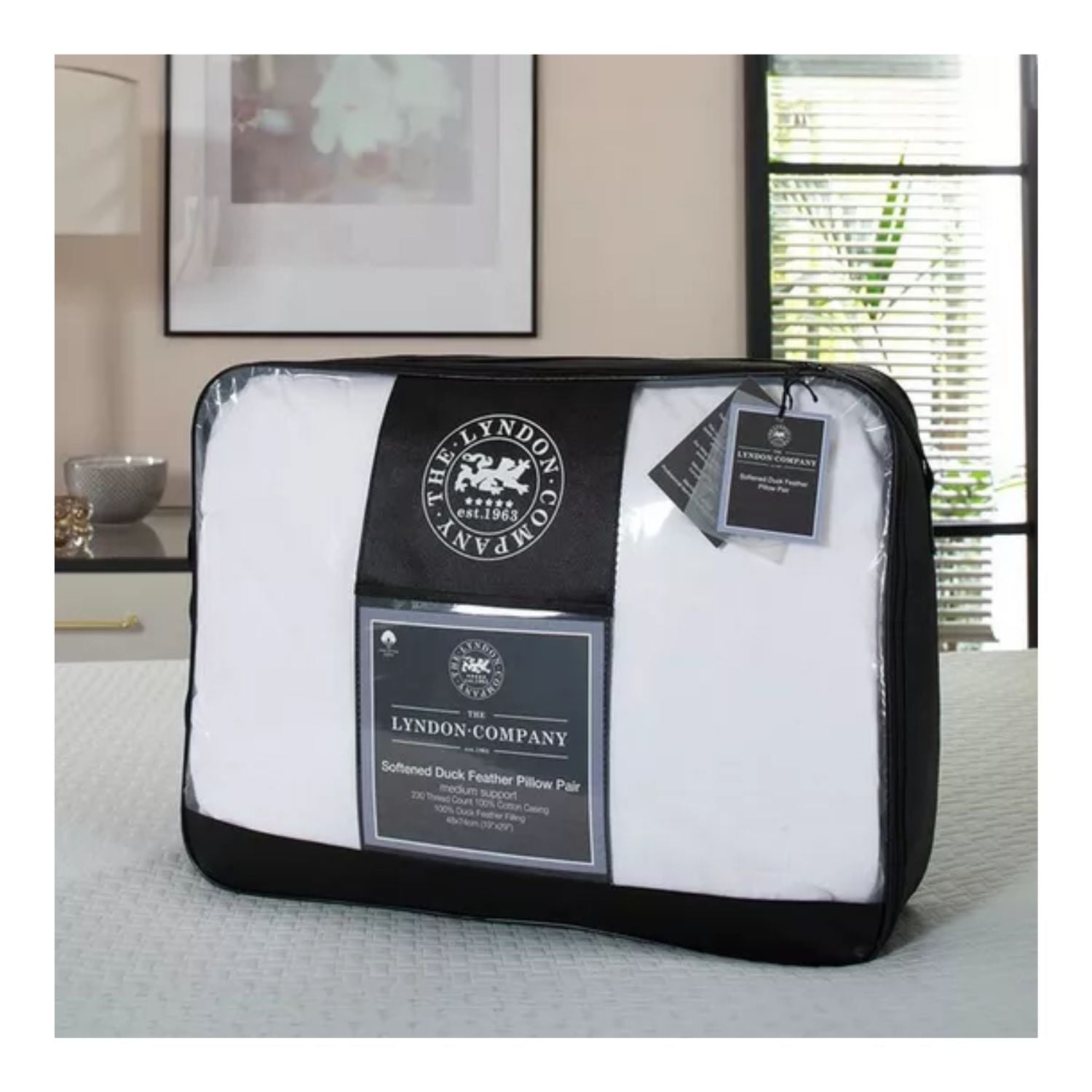 Upgrade your bedding with the Deyongs Softened Duck Feather Pillow Pair - Medium Support. Enjoy the perfect blend of comfort, support, and breathability for a superior sleep experience night after night.