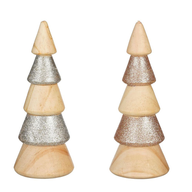 Add a touch of understated elegance to your festive décor with the Edelman Wooden Christmas Tree Ornament (Choice of 2). Standing 13.5cm tall, these beautifully shaped wooden trees feature a smooth finish and are available in two classic tones — champagne gold and silver. The mix of natural wood and gentle metallic shimmer gives them a contemporary yet warm appeal, making them perfect for both modern and traditional Christmas settings.