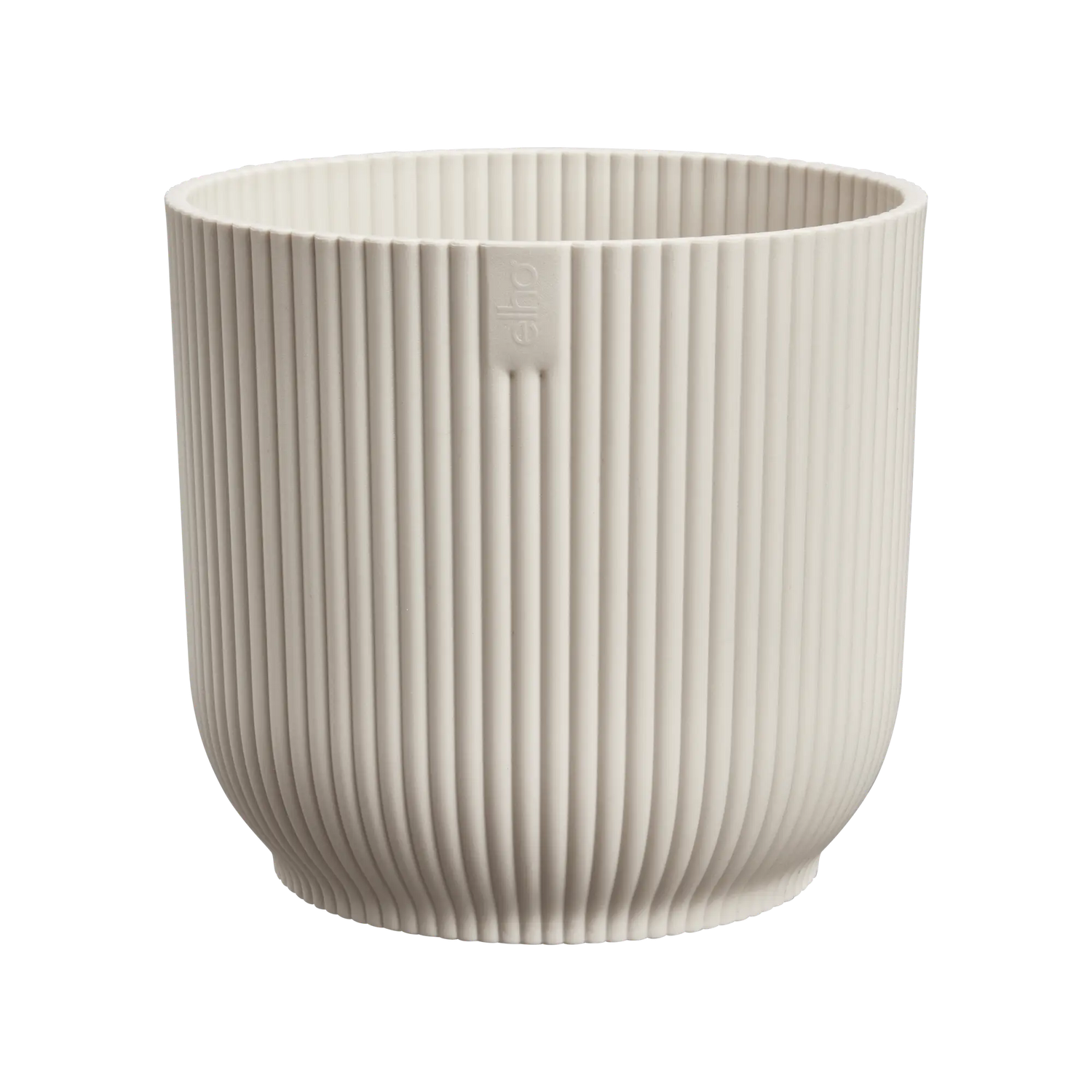 The Elho 14cm Vibes Fold Coupe Plant Pot – White Linen is a stylish indoor planter designed to complement houseplants while adding a clean, modern touch to any room. Featuring a soft ribbed texture and made from 100% recycled plastic, this decorative pot blends contemporary design with sustainable materials.