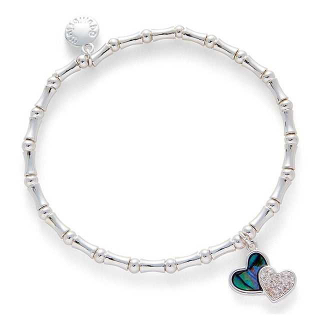 Equilibrium 2cm Paua Shell Two Hearts Silver Plated Bracelet