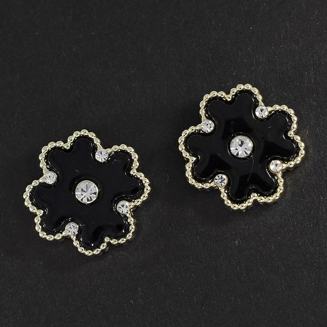 Equilibrium Clover Mother of Pearl Crystal Gold Plated Earrings – Black