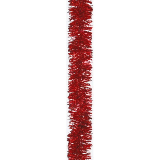 • 2m long luxury tinsel garland with both chunky and fine red strands