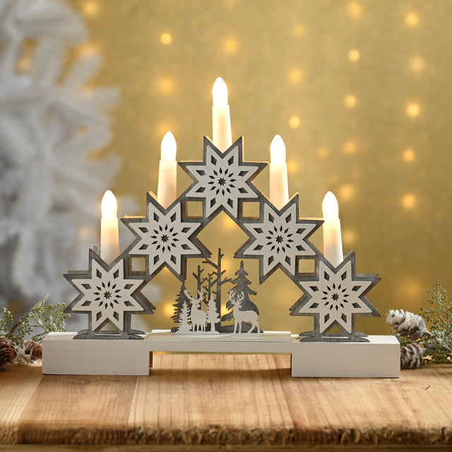 Festive 30cm Star & Reindeer Candle Bridge