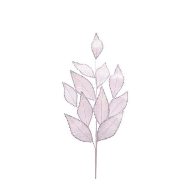 Festive 81cm Pink Silver Glitter Leaves Stem