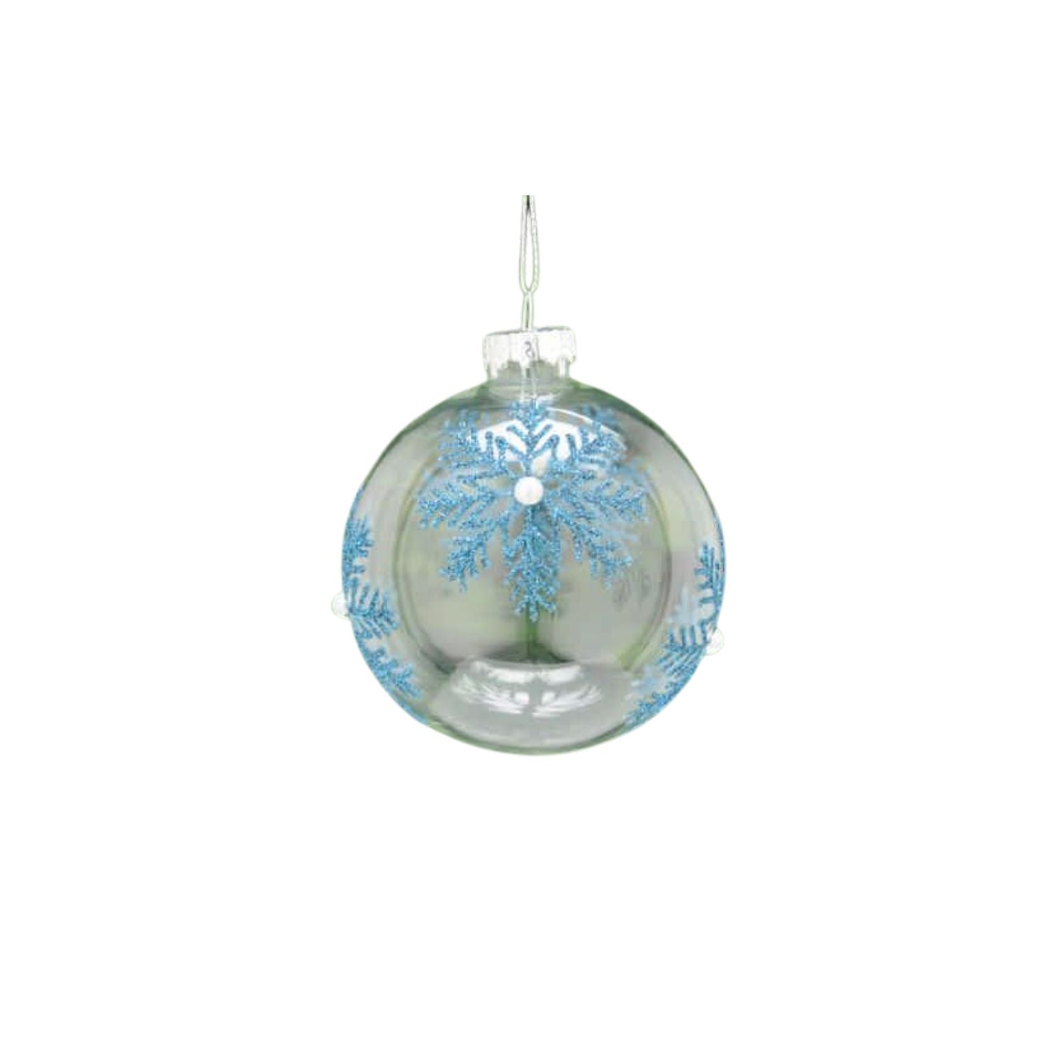 Festive 8cm Clear Blue Glitter Snowball Bauble – Winter Wonderland Christmas Decoration
