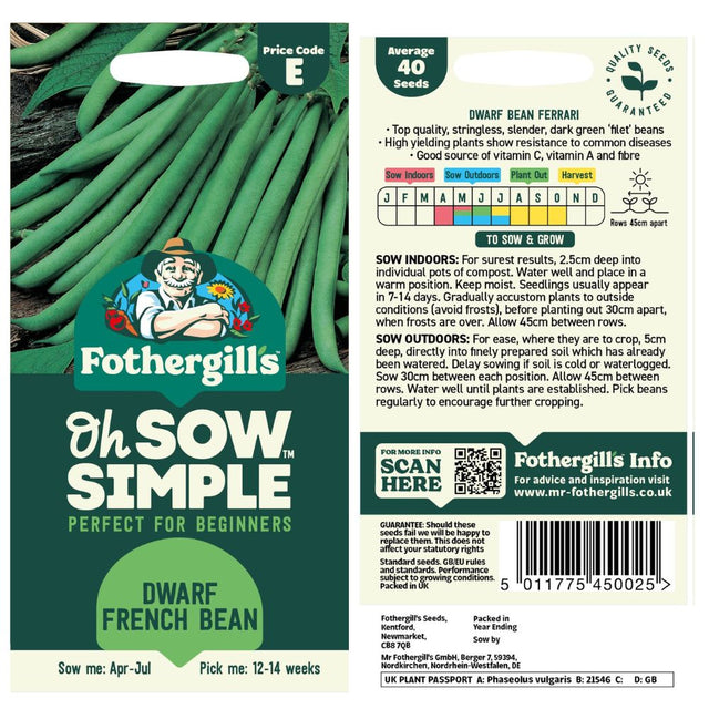 Enjoy a bountiful harvest of crisp, tender beans with Fothergills Oh Sow Simple Dwarf French Bean. Perfect for small gardens, containers, or raised beds, this compact variety offers high yields of delicious beans with minimal space needed. Easy to grow and fast to mature, it’s an excellent choice for beginners and seasoned gardeners alike.