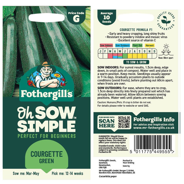 Fothergills Oh Sow Simple Green Courgette is an easy-to-grow, high-yielding vegetable that will provide fresh, tender courgettes throughout the summer. Perfect for small gardens, raised beds, or containers, it’s a must-have for anyone looking to grow delicious courgettes with minimal effort.