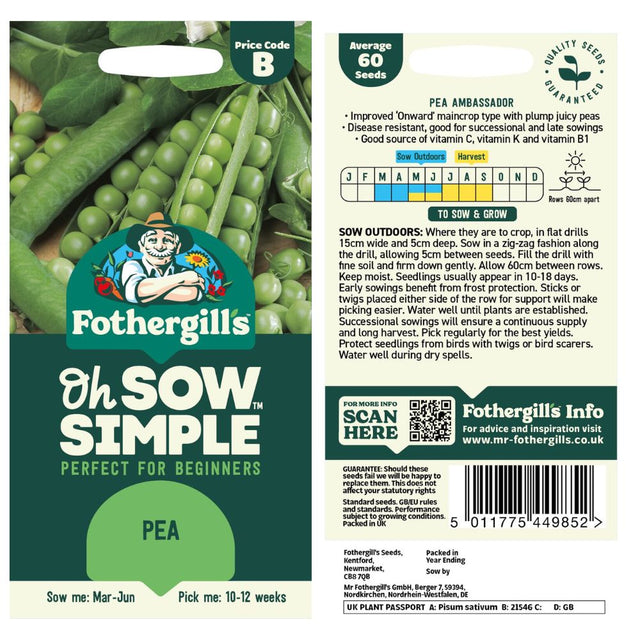 Fothergills Oh Sow Simple Pea brings the joy of fresh, homegrown produce to your table. Easy to cultivate and incredibly rewarding, these sweet and tender peas will quickly become a garden favourite.