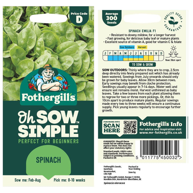 Fothergills Oh Sow Simple Spinach is an easy and rewarding way to grow your own fresh, nutritious greens. With its quick growth and versatile use, it’s perfect for both beginner gardeners and seasoned green thumbs alike!