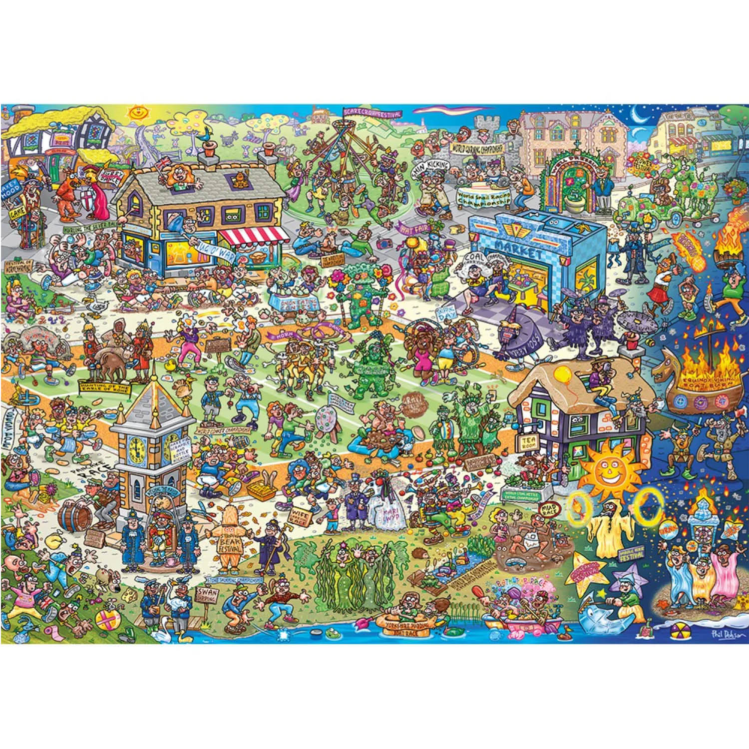 Get ready for a hilarious journey across Great Britain with the Barmy Britain 1000 Piece Jigsaw Puzzle, designed by the talented Phil Dobson.