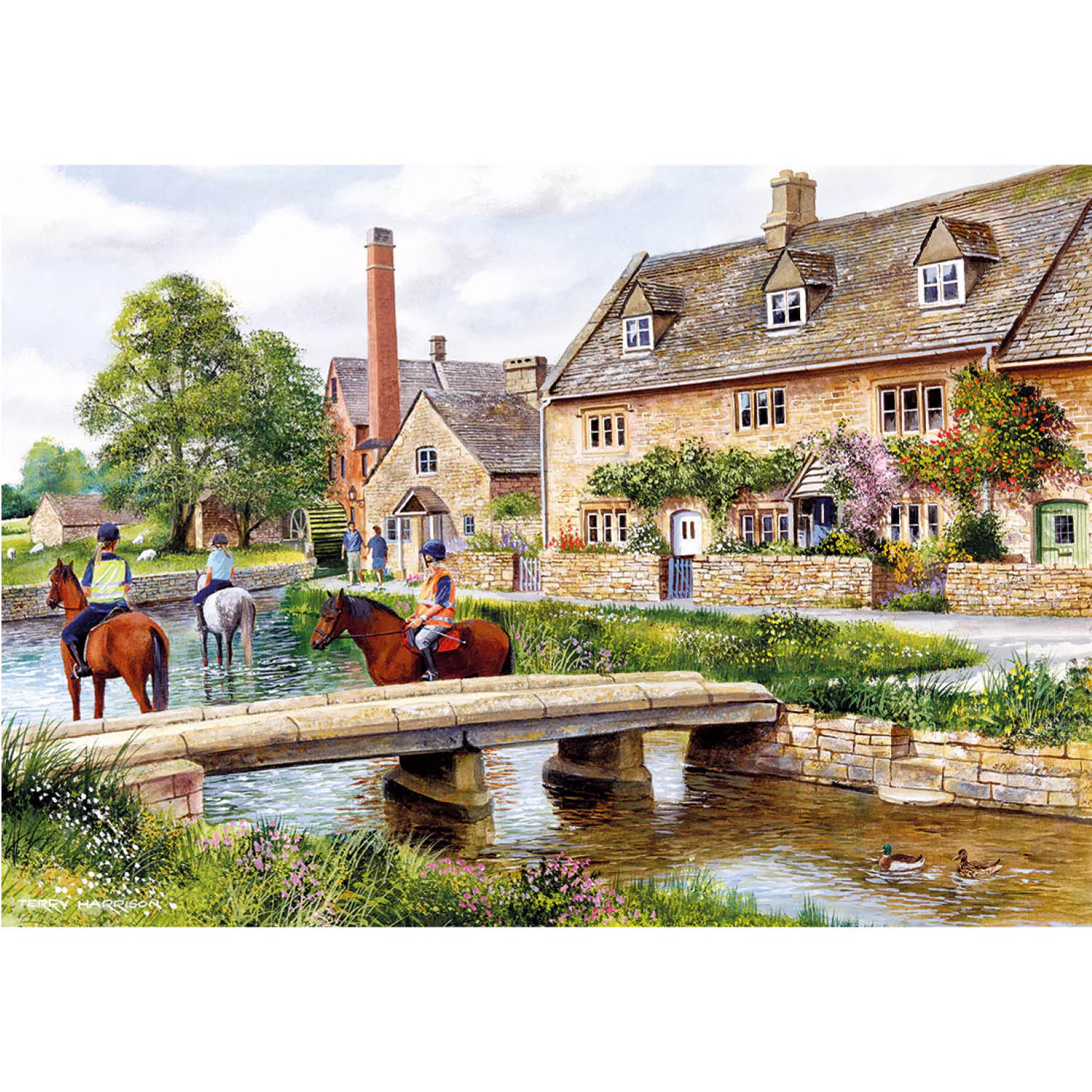 Embark on a picturesque countryside adventure with this set of four 500-piece jigsaw puzzles, each capturing the serenity and charm of village life by the water. From thatched cottages nestled beside calm waters to scenic canals and rustic riverbanks with horses cooling down on a summer's day, each puzzle reveals a new part of this tranquil landscape.