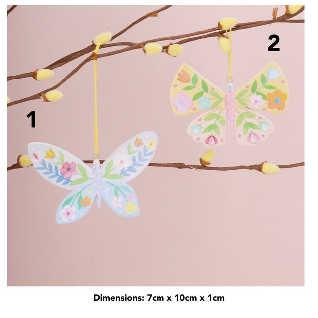 - A gorgeous pair of 2 butterflies with a pastel flowers design hanging decoration