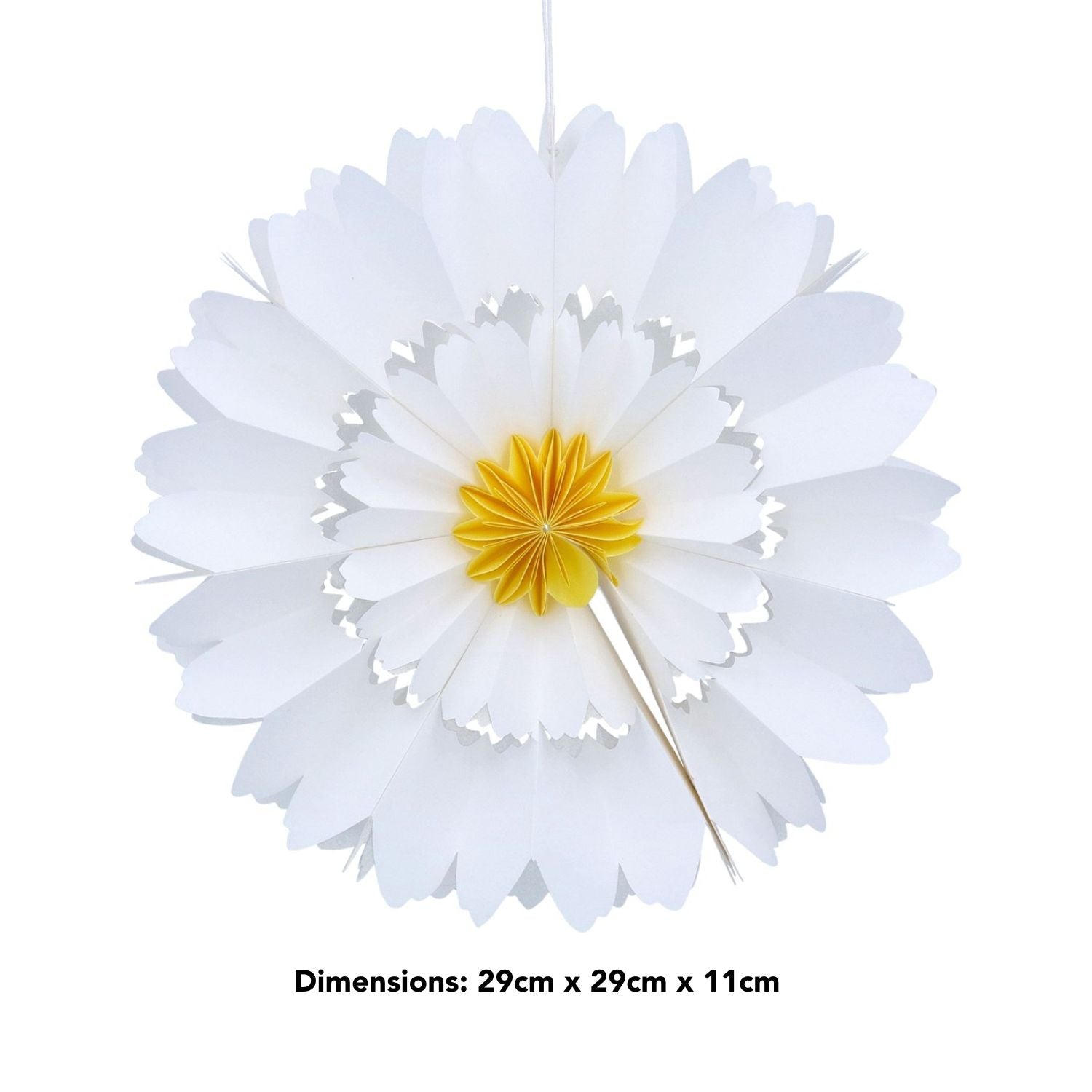 - A stunning white multi‐petal paper flower hanging decoration