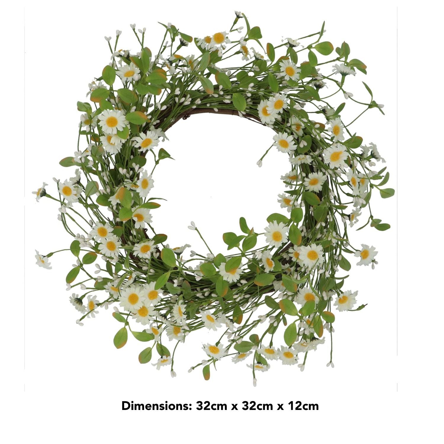 Gisela Graham 32cm Daisy/Green Leaf Wreath