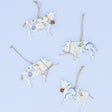 - A set of 4 pig and cow hanging decorations with a blue meadow design