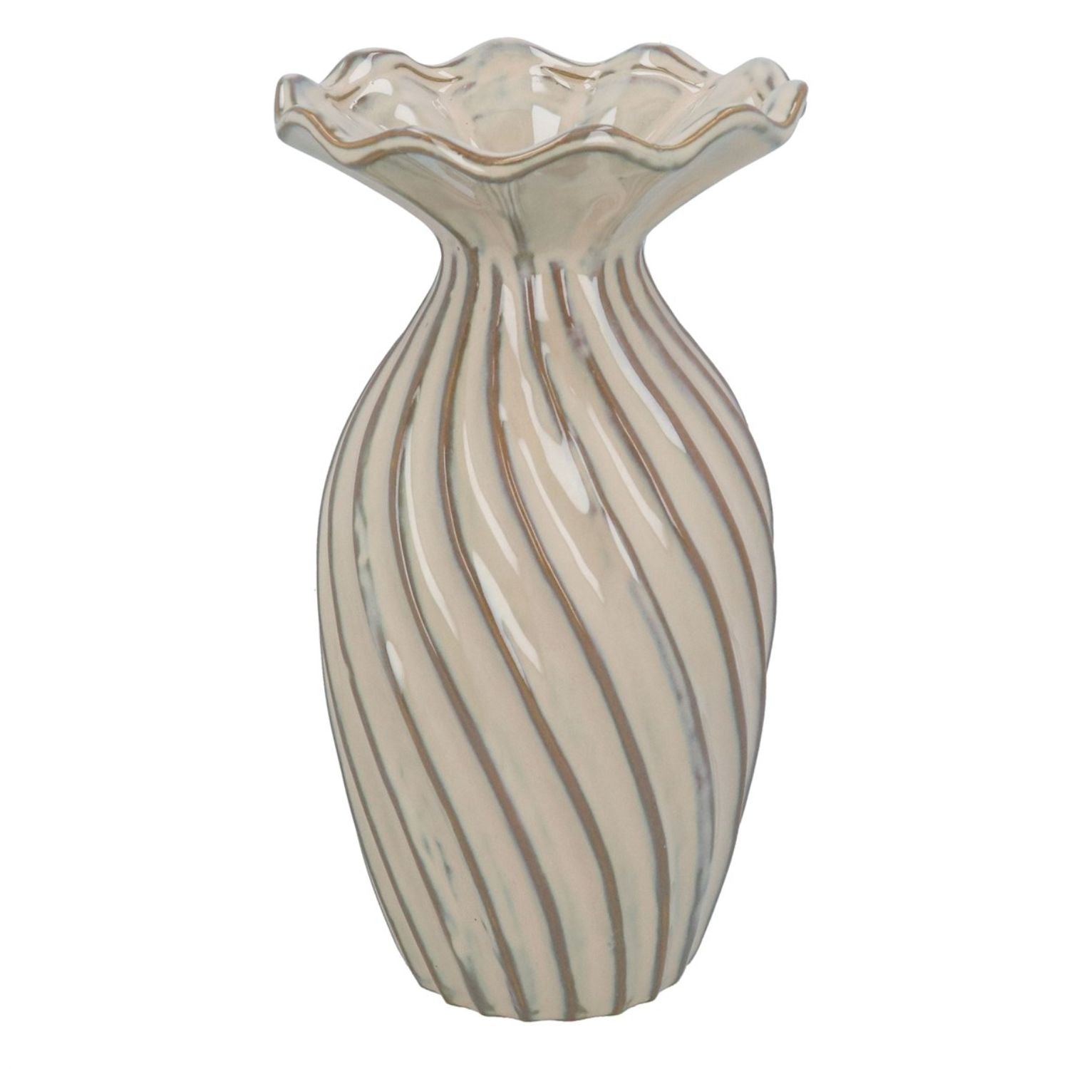 Gisela Graham Stoneware Taupe Frill Decorative Vase
