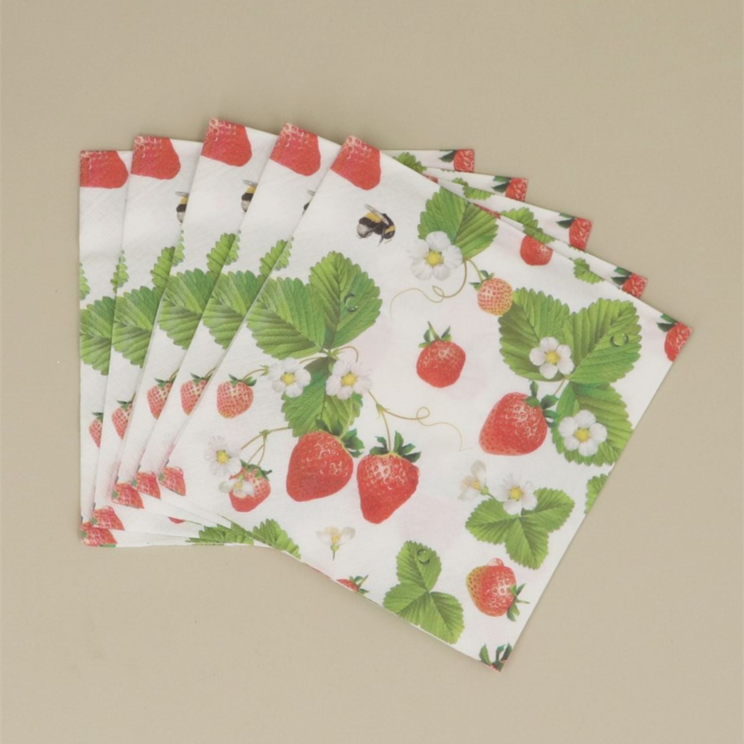 - Charming Strawberry Flowers Design: The napkins feature a beautifully illustrated pattern of strawberry flowers, adding a fresh and vibrant look to any occasion
