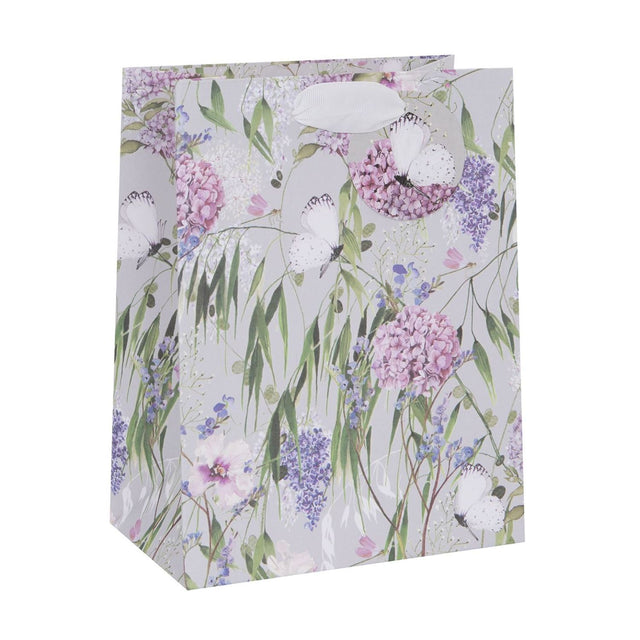 Add a charming touch to your gift with the Glick Floral Butterfly Medium Gift Bag in White, featuring a delicate all-over floral and butterfly design. This beautifully crafted gift bag is perfect for birthdays, celebrations, and special occasions.
